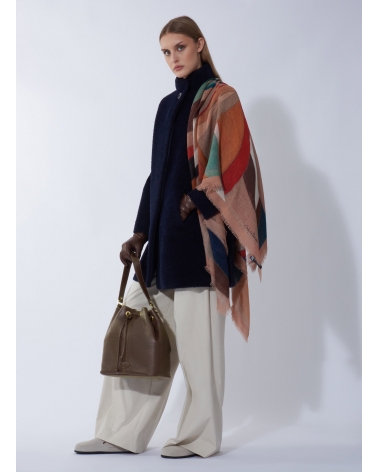 Maxi foulard in lana e seta con disegno stilizzato rosa