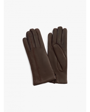 Guanti marroni in nappa con ricamo sul dorso