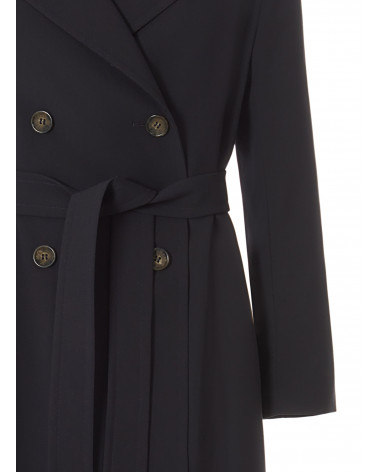 Maxi trench blu doppio petto in tessuto tecnico antigoccia