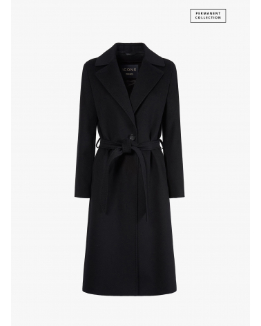 Cappotto nero con cintura in pura lana linea aderente