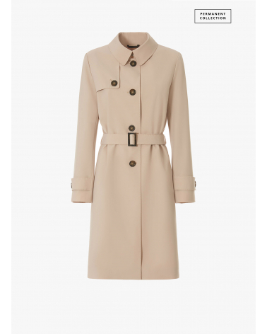 Trench monopetto beige in tessuto tecnico con impunture sartoriali