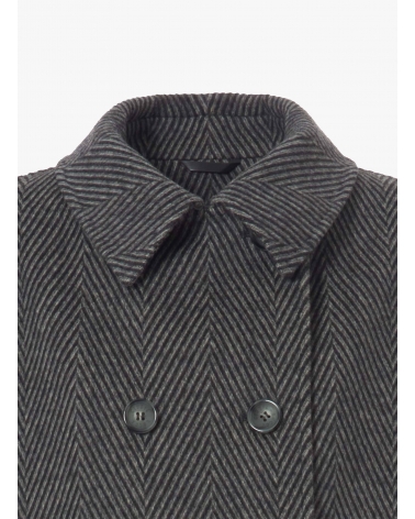 Peacoat con fantasia spigata grigia in pura lana