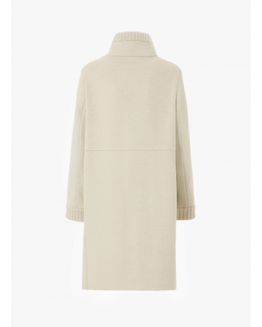 Cappotto beige in pura lana zibeline con inserti in maglia