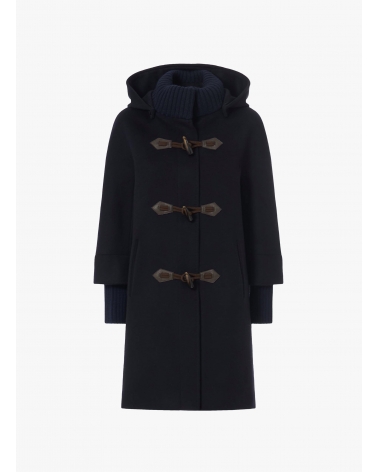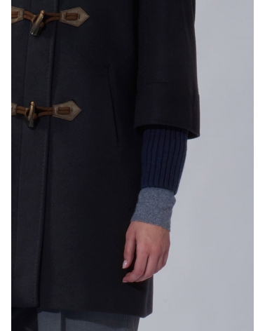 Parka blu con cappuccio e alamari in pura lana