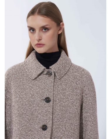 Cappotto con fantasia marrone e collo a camicia in lana