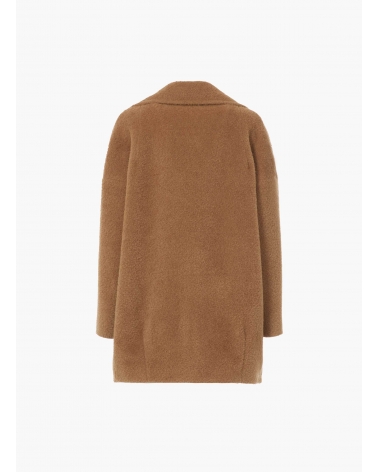 Cappotto corto oversize cammello scuro doppio petto in lana e alpaca