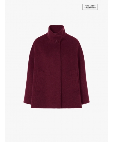 Cappotto corto bordeaux svasato con collo alto in lana