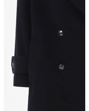 Cappotto nero doppio petto in lana e cashmere con bottoni in metallo con logo