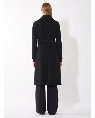 Cappotto nero con cintura in pura lana linea aderente