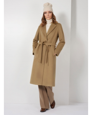 Cappotto cammello con cintura in puro cashmere linea aderente