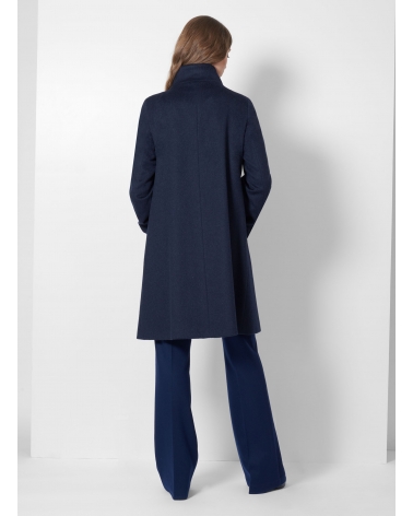 Cappotto blu svasato in puro cashmere