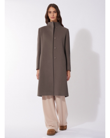 Cappotto taupe scuro in lana e cashmere con collo alto
