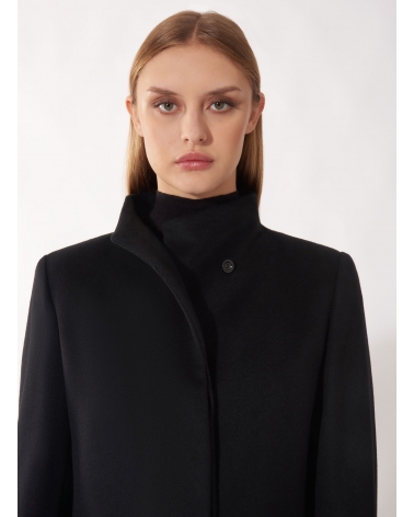 Cappotto nero in puro cashmere con collo alto