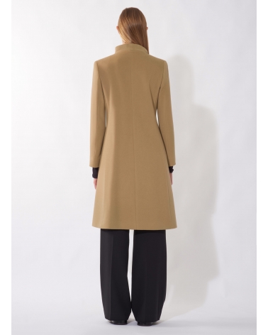Cappotto cammello in puro cashmere con collo alto