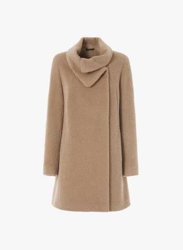 Cappotto corto beige svasato in lana e alpaca con collo incrociato