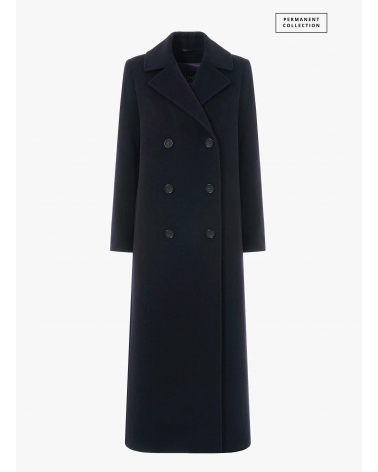 Maxi cappotto blu doppio petto 6 bottoni in lana e cashmere
