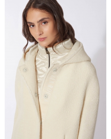 Parka corto bianco in lana con pettorina in nylon staccabile