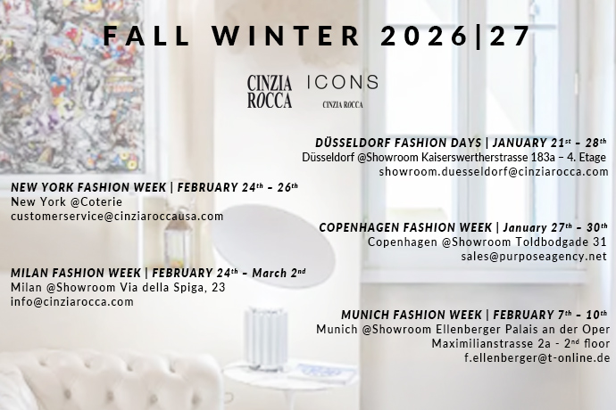 Cinzia Rocca sarà presente ai Düsseldorf Fashion days (DFD) 21/28.01.2026,