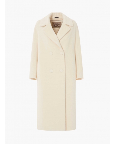 Cappotto lungo bianco doppio petto in alpaca e lana