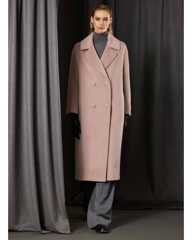 Cappotto lungo rosa doppio petto in alpaca e lana
