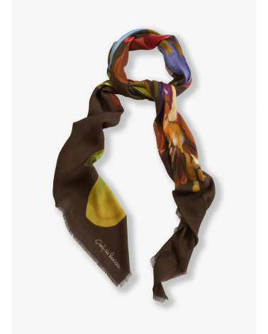 Schal mit Blumenmuster aus Modal und Cashmere in Braun
