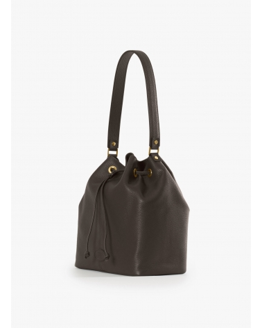 Beuteltasche mit Einsatz und Logo aus Leder in Braun