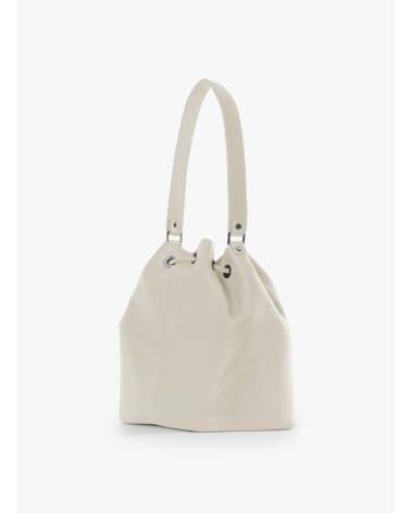 Beuteltasche mit Einsatz und Logo aus Leder in Weiß