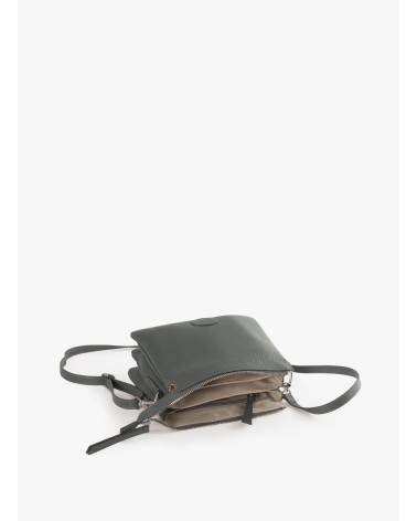 Umhängetasche mit drei Innenfächer aus Leder in Grau