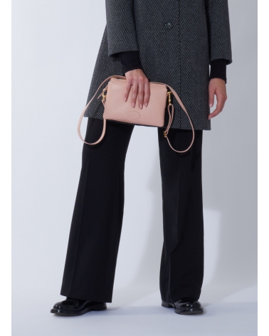 Umhängetasche mit drei Innenfächer aus Leder in Rosa