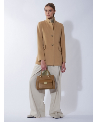 Steife Tasche aus Leder mit Metallverschluss in Tabak