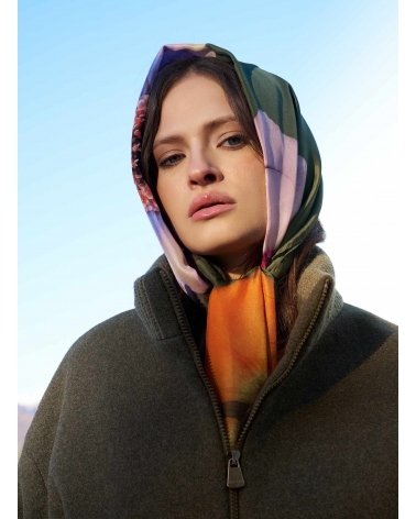 Schal mit Blumenmuster aus reinem Seidentwill in Grün
