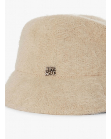 Asymmetrischer Hut aus Wolle mit Felloptik in Beige