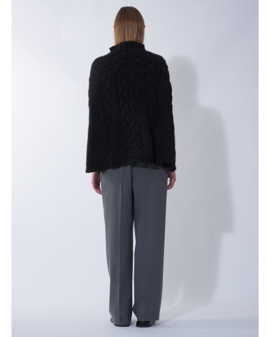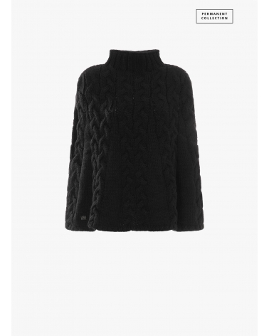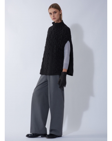 Gestricktes Cape mit Zopfmuster in Schwarz