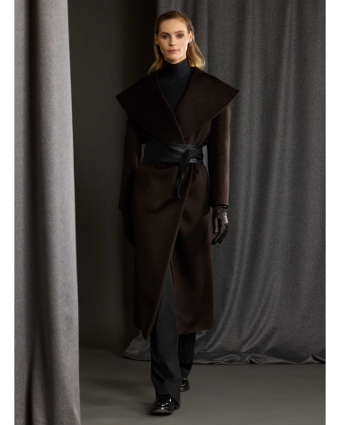 Mantel mit Schalkragen aus reiner Seide in Braun