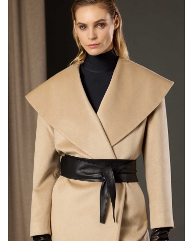 Mantel mit Schalkragen aus reiner Seide in Beige