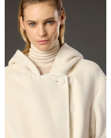 Maxi Gürtelmantel mit Kapuze aus Alpaka und Wolle in Weiß