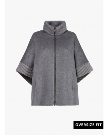 Cape mit Reißverschluss aus reiner Wolle mit Zobel-Effekt in Grau