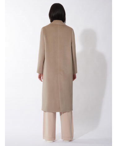 Langer zweireiher Mantel mit 6 Knöpfen aus Alpaka und Wolle in Beige