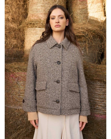 Kurzmantel mit Hemdkragen und aufgesetzte Taschen aus Wolle in Braun
