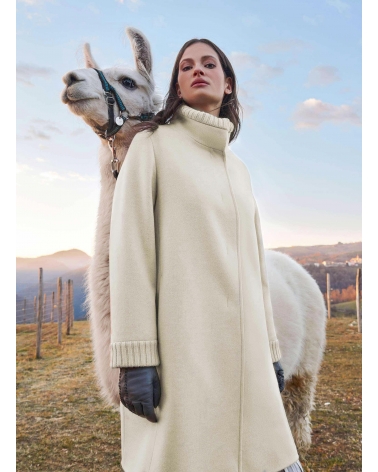 Mantel mit Strick-Details aus reiner Wolle mit Zobel-Effekt in Beige