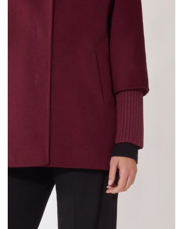 Oversized Kurzmantel mit Strick-Details aus reiner Wolle mit Zobel-Effekt in Bordeaux