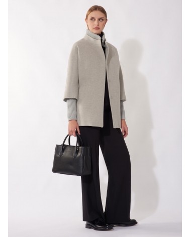 Oversized Kurzmantel mit Strick-Details aus reiner Wolle in Beige