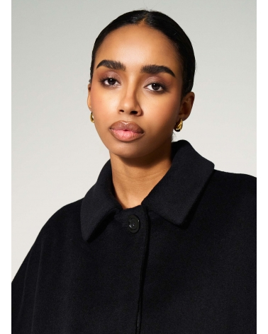 Oversized Mantel mit Hemdkragen aus reiner Wolle in Schwarz