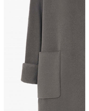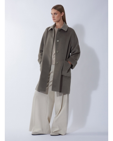 Oversized Mantel mit Hemdkragen aus reiner Wolle in Dunkeltaupe