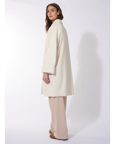 Oversized Mantel mit Hemdkragen aus reiner Wolle in Weiß