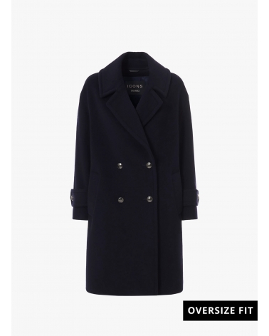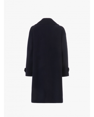 Zweireiher Mantel mit Metallknöpfe mit Logo aus Wolle und Cashmere in Blau
