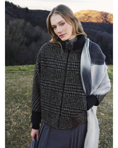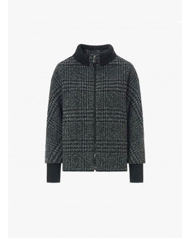Kurzmantel mit Check-Muster, Reißverschluss und Strick-Details in Grau