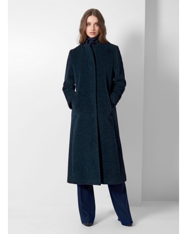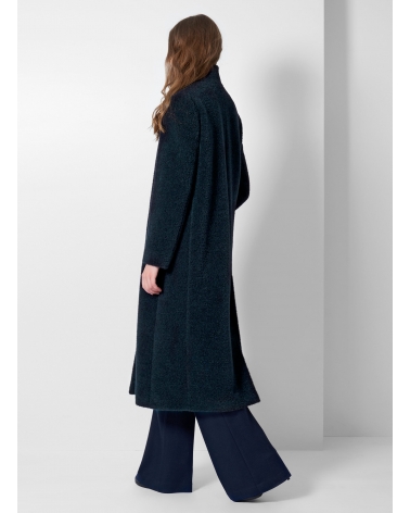 Maxi Mantel mit umklappbarem Reverskragen aus Wolle und Alpaka in Marineblau