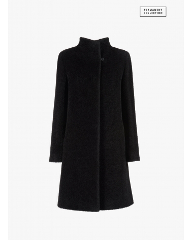 Ausgestellter Stehkragen Mantel aus Wolle und Alpaka in Schwarz