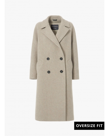 Zweireiher Oversized Mantel mit feinem Pied-de-Poule-Muster in Beige
